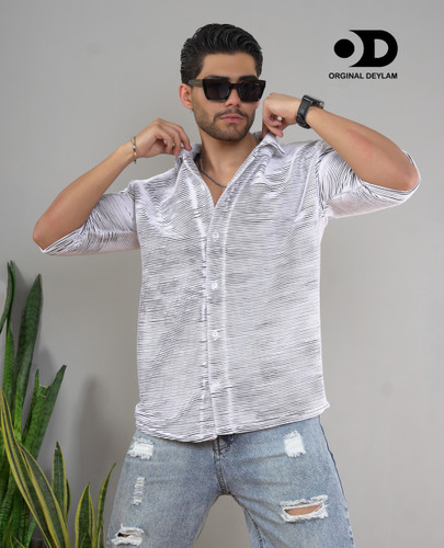 پیراهن سفید لش یقه انگلیسی مردانه بافت فوقالعاده خفن و خاص