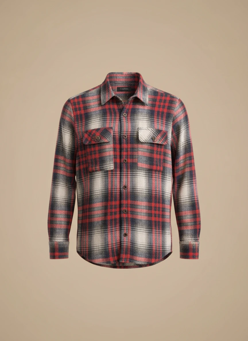 پیراهن پشمی چهارخونه با پارچه برسخورده و ترکیب رنگ قرمز سفید – کد ۸۹۲