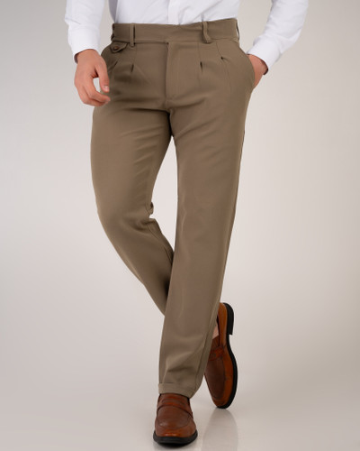 شلوار پارچهای مردانه کمر انگلیسی با طراحی خاص و برش حرفهای در بخش کمر، گزینهای مناسب برای افراد خوشپوش است. این شلوار معمولاً ایستایی بسیار خوبی دارد و برای استایل رسمی فوقالعاده است. جزئیات دقیق در کمر باعث شده این مدل بین طرفداران استایل کلاسیک محبوب باشد.