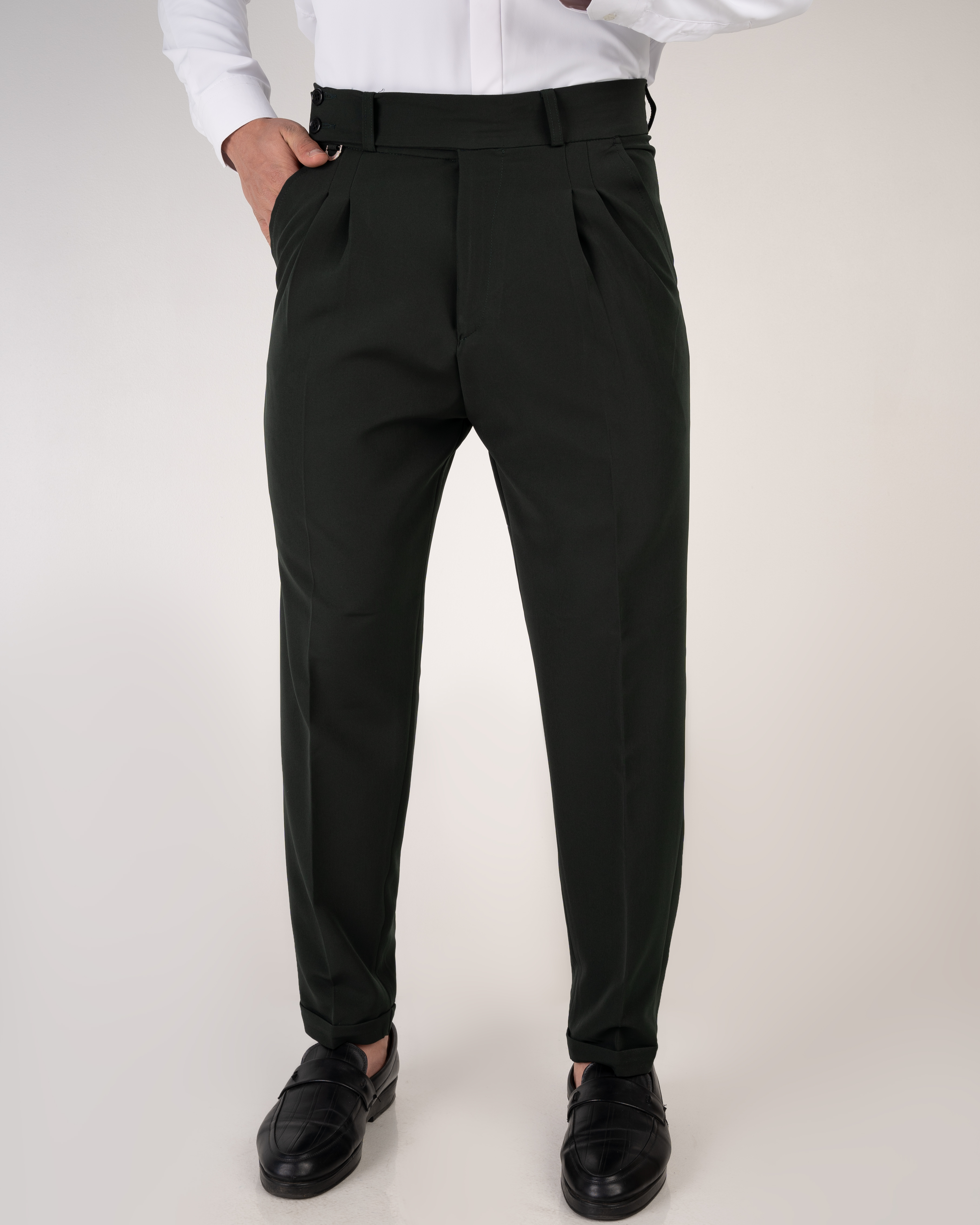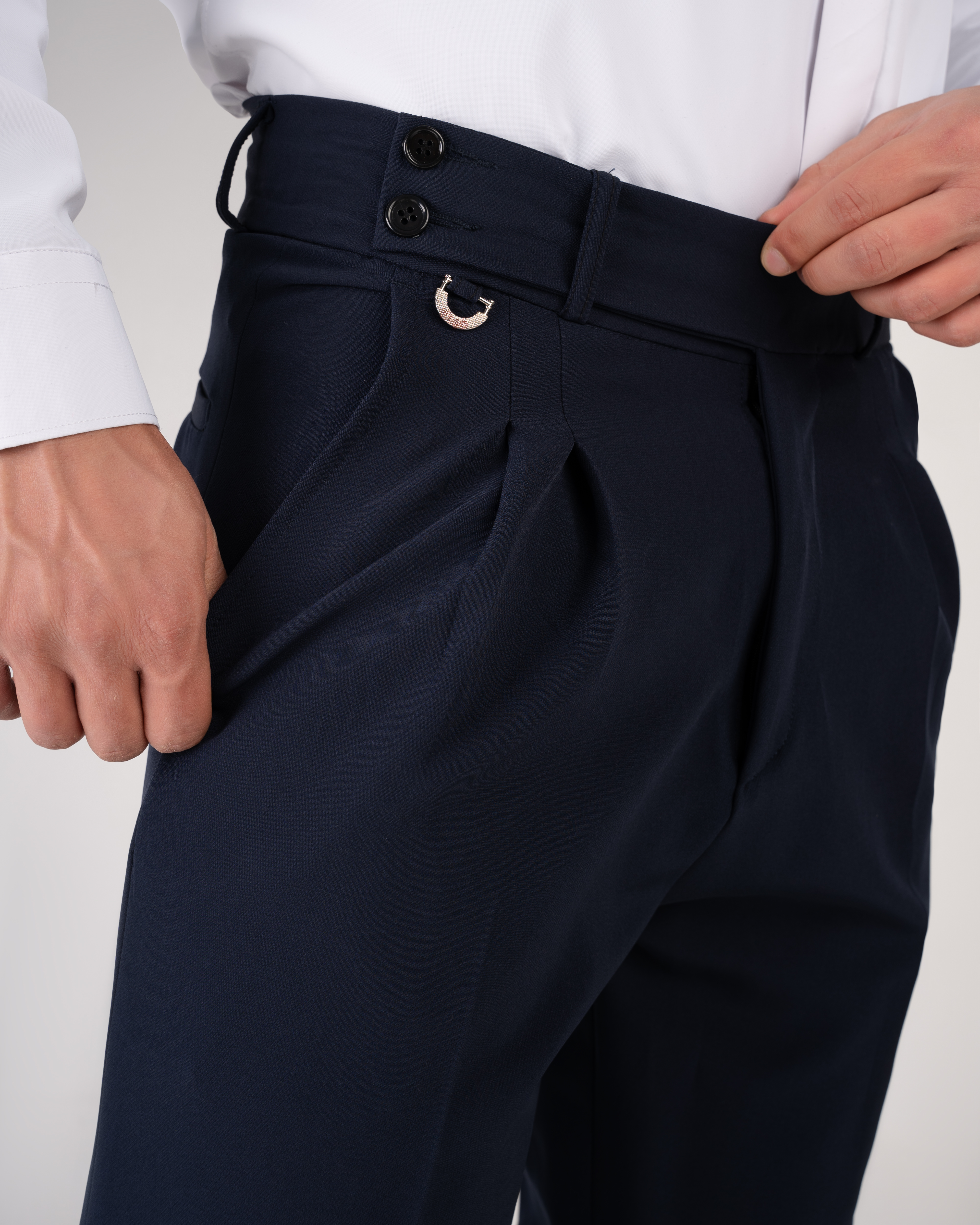 شلوار پارچهای مردانه کمر انگلیسی با طراحی خاص و برش حرفهای در بخش کمر، گزینهای مناسب برای افراد خوشپوش است. این شلوار معمولاً ایستایی بسیار خوبی دارد و برای استایل رسمی فوقالعاده است. جزئیات دقیق در کمر باعث شده این مدل بین طرفداران استایل کلاسیک محبوب باشد.