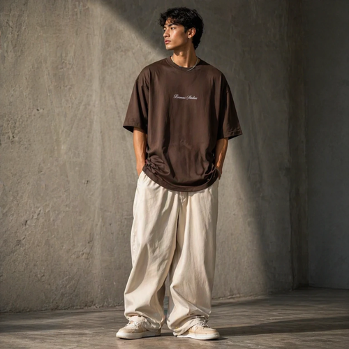 تیشرت اوور سایز مردانه [سفید-مشکی-قهوه ای-آبی ایتالیایی]پارچه پنبه نخ ۲۸ درجه یک | قالب باکسی