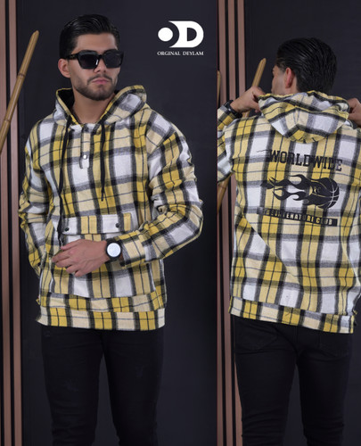 هودی پشمی چهارخونه ضخیم کیفیت بالا رنگ خردلی