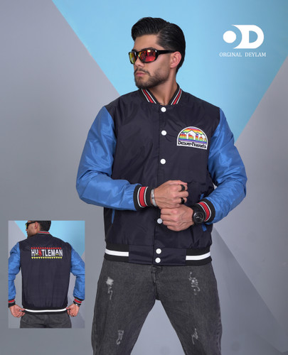 بامبر جکت بیسبالی آستین چرم بسیار خاص پارچه فوتر