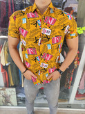 پیراهن هاوایی خردلی طرح لوییز ویتون