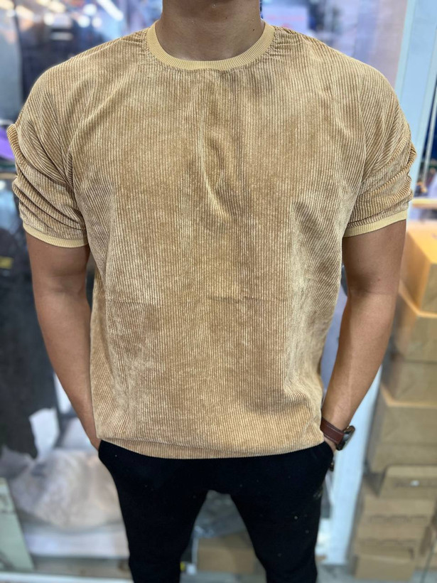 تیشرت مخمل کبریتی با رنگ کرم قهوه ای