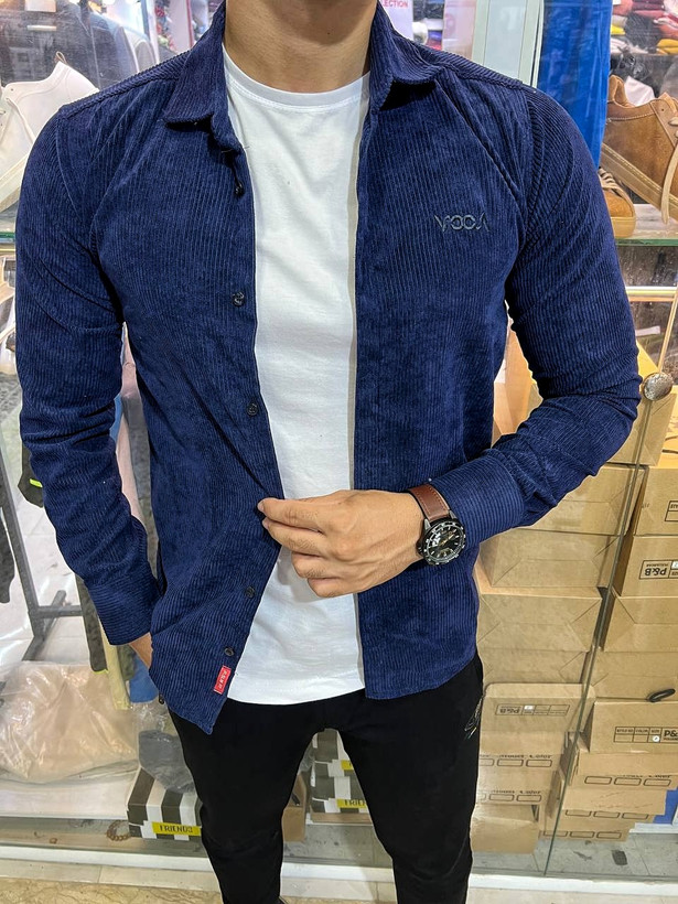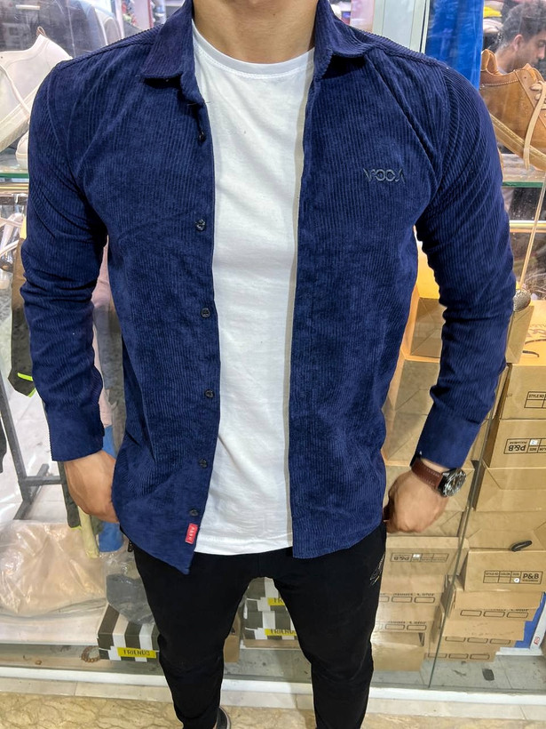 پیراهن مخمل کبریتی مردانه سرمه ای