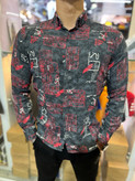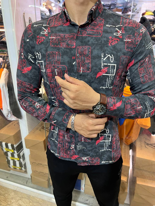 پیراهن دنیم سرمه ای قرمز و نوک مدادی