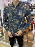 پیراهن دنیم سنگشور سرمه ای و زرد