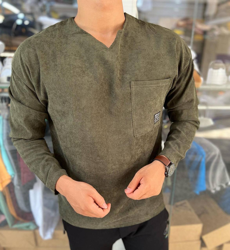 بلوز مخمل کبریتی یقه کوبایی سبز صدری