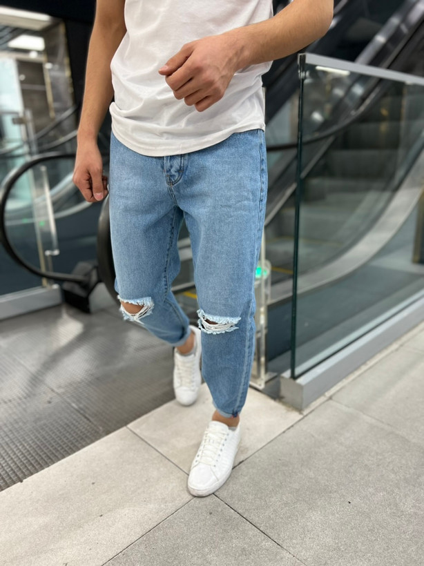 شلوار مام فیت مردانه یخی با طراحی منحصر به فرد زانو تیغ خورده، ترکیبی از راحتی و استایل مدرن است. این شلوار با برش خاص و فیت ایدهآل، انتخابی عالی برای آقایان شیکپوش است.