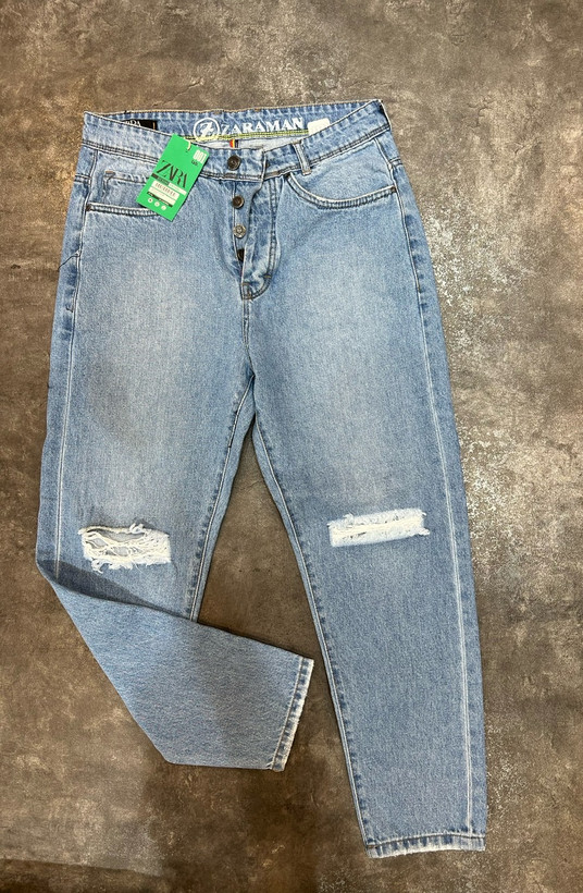 شلوار جین مام فیت یخی تیغ خورده جدید و تضمینی آف تک سایز۳۶