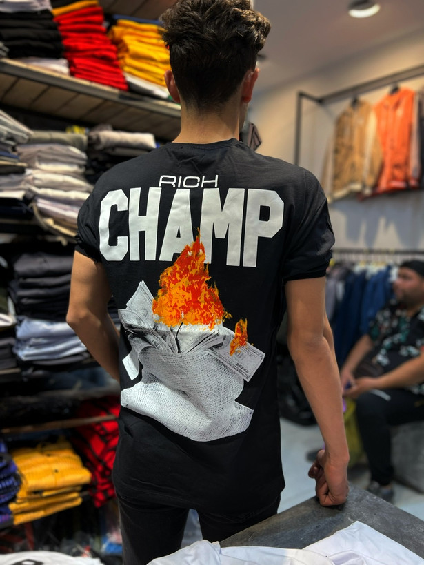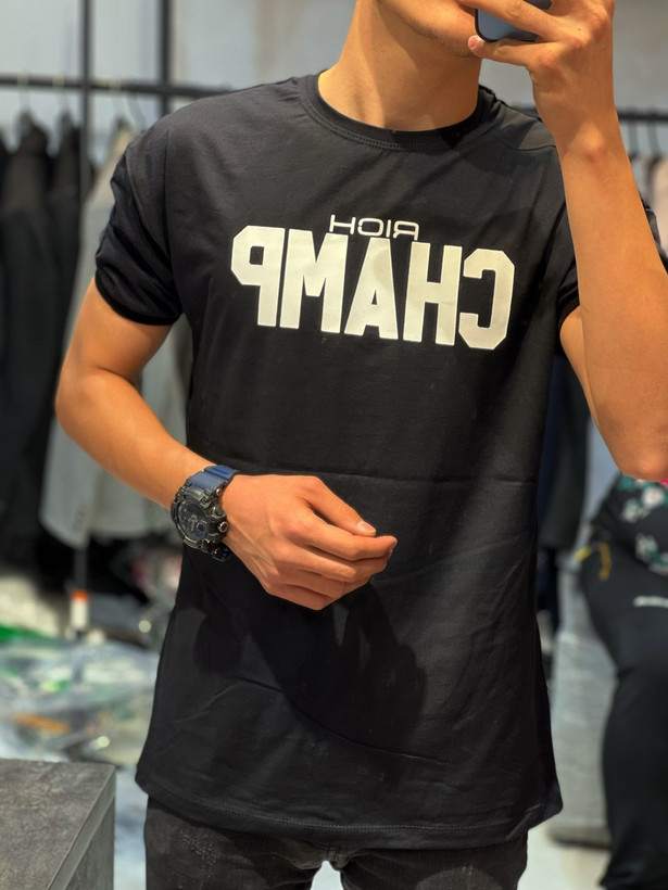 تیشرت لش پشت چاپ یقه آستین کش طرح دلار