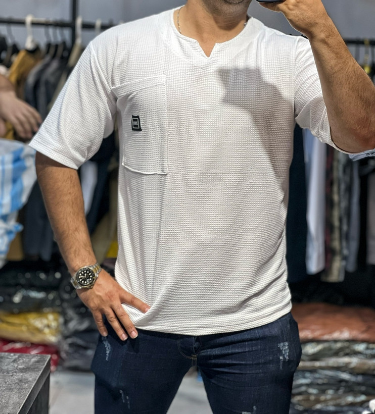 تیشرت یقه کوبایی پارچه بیسکوییتی اعلا
