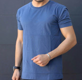 تیشرت بیسیک پنبه براش رنگ آبی کلاسیک با خرج کار