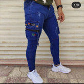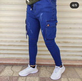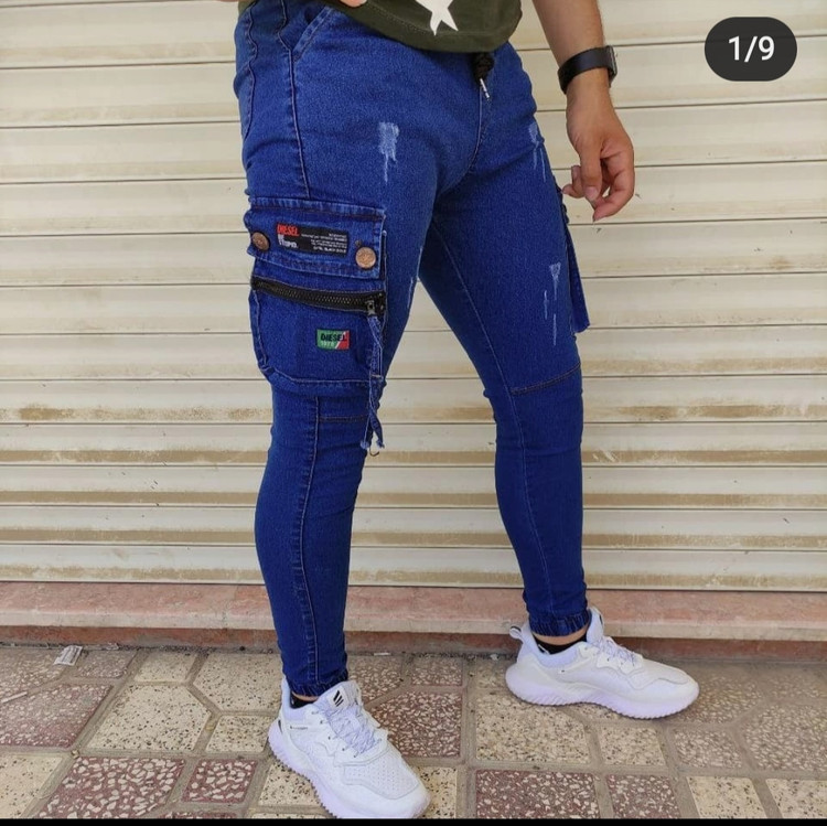 اسلش جین آبی پر رنگ پارچه جین پنبه سوپر کش