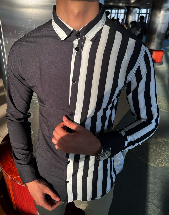 پیراهن ترکیبی جذاب مشکی سفید پارچه بوگاتی