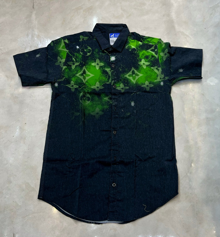 پیراهن آستینکوتاه بوگاتی مشکی با طرح سبز فسفری خاص