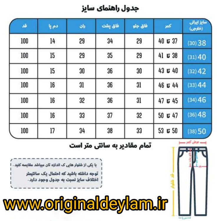 قد شلوار: ۱۰۳ سانتی متر-مدل سایز ۳۲ با قد و وزن ۱۸۰-۸۰
