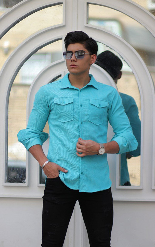 پیراهن کبریتی ریز آبی فیروزه ای بسیلر جذاب و با کیفیت