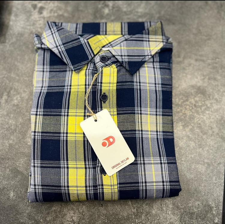 پیراهن چهارخانه جذاب و اسپرت سرمه ای لیمویی کد ۶۵۸