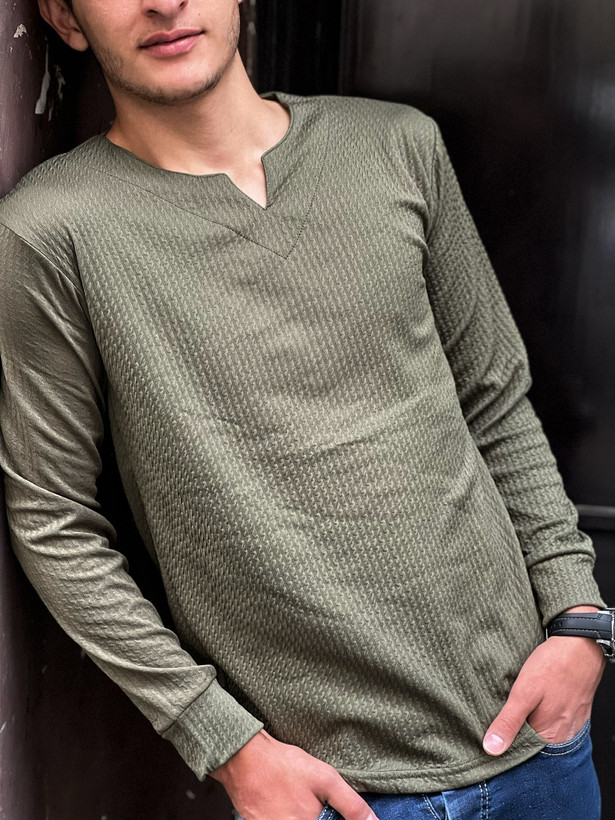 ‌بلوز یقه کوبایی پاییزه پارچه بیسکوییتی اعلا سبز لجنی