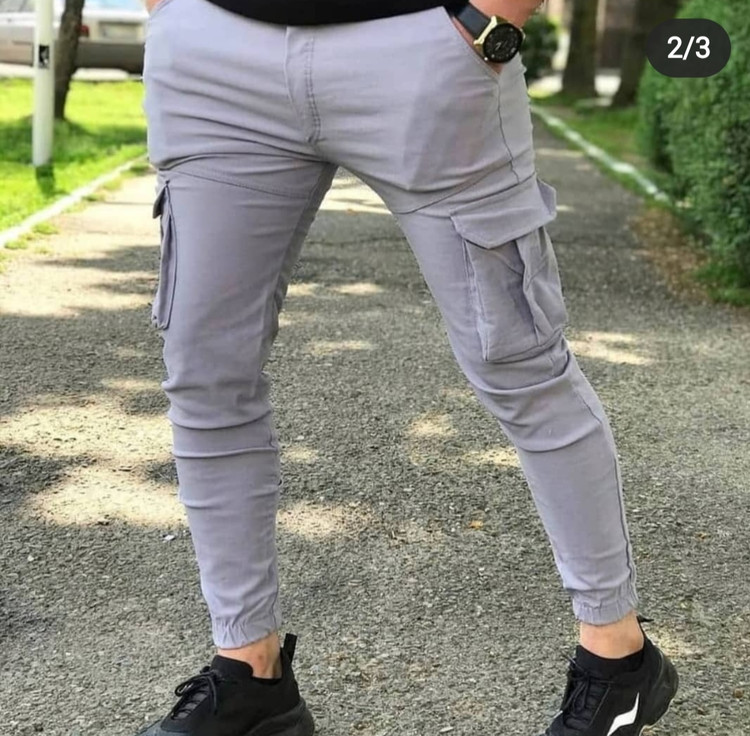 اسلش شش جیب خاکستری پارچه کتان پنبه کش در جه یک