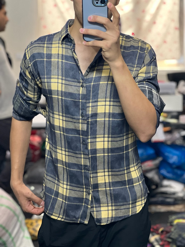راهنمای سایز بندی پیراهن چهارخانه مردانه دنیم سنگ شور