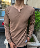 تیشرت آستین بلند یقه کوبایی درجه یک رنگ شتری
