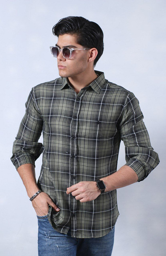 پیراهن چهارخانه جدید ۲۰۲۴ پارچه کنف بیسکوییتی سبز کد ghf567