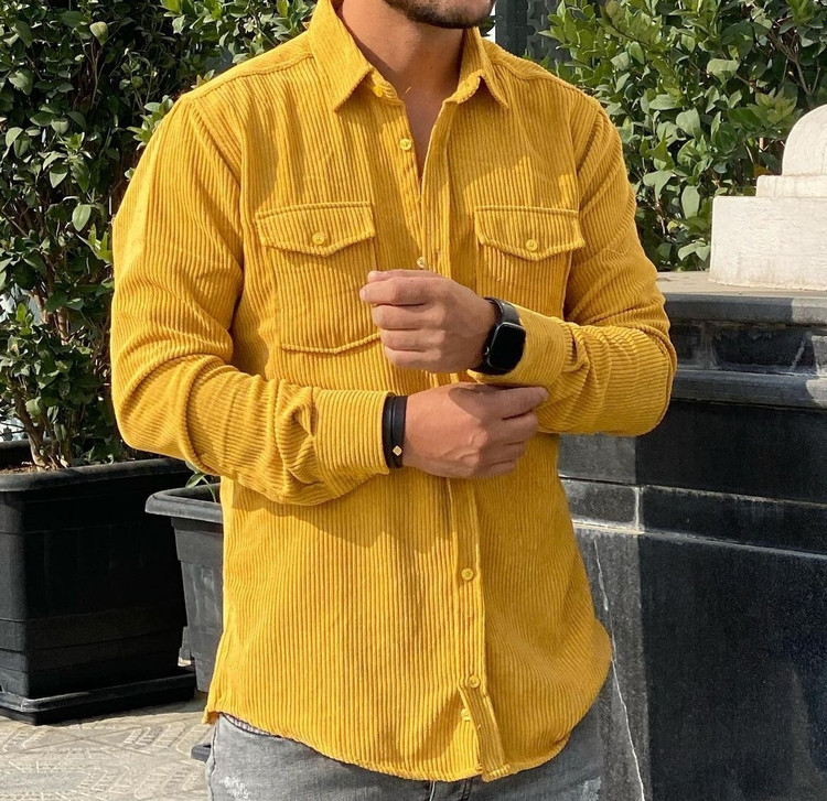 پیراهن کبریتی مردانه رنگ زرد کهربایی مدل ۲۰۲5