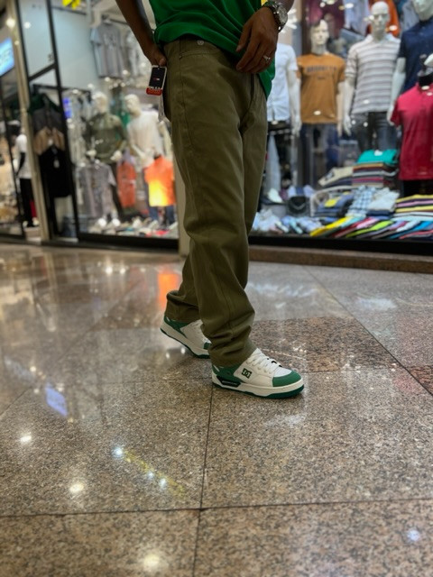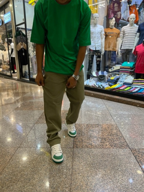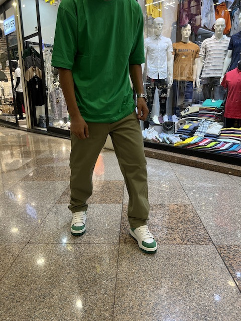طراحی بگ استایل با رنگ سبز لجنی خاص و جنس کتان مرغوب برای استایلی متفاوت
