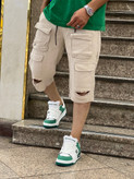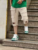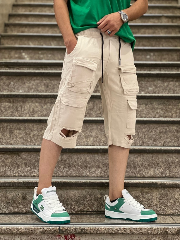 - کتانیهای سفید: کتانیهای سفید همواره یک انتخاب مناسب برای استایلهای غیررسمی هستند و به جذابیت شلوارک کرمی افزوده میشود.