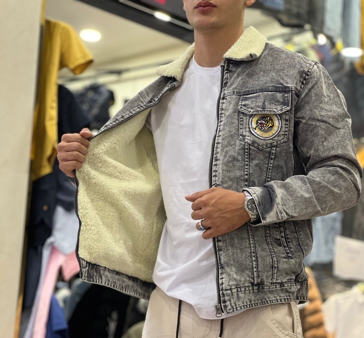 کت جین تمام خز زیپدار رنگ طوسی کد ۱۵۹