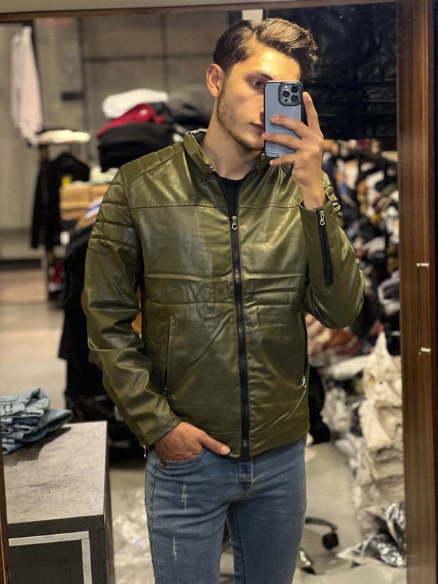کاپشن چرم سبز لجنی جی استار کیفیت عالی لارج تا چهار ایکس لارج