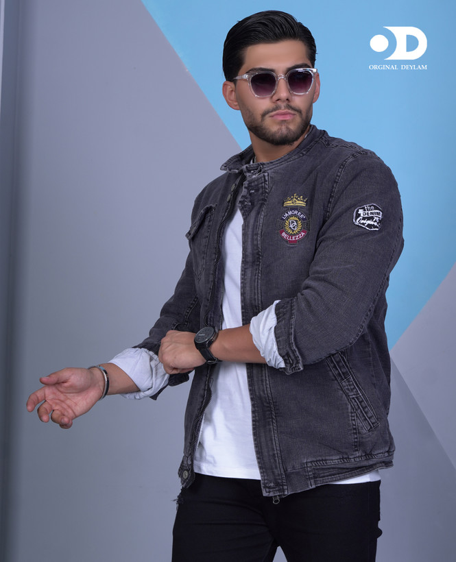 بایکر جکت جین تمام خز ذغالی-گرم بالا کیفیت عالی
