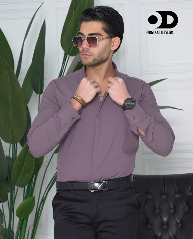 پیراهن مردانه رنگ پوست پیازی شیک و خاص/پارچه دوشین اعلا