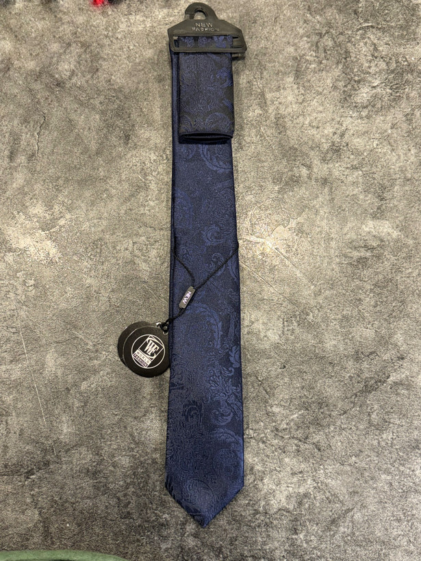 ست کراوات و پوشت سرمه ای طرح پتینه اورجینال دیلم | کد ۱۷۸