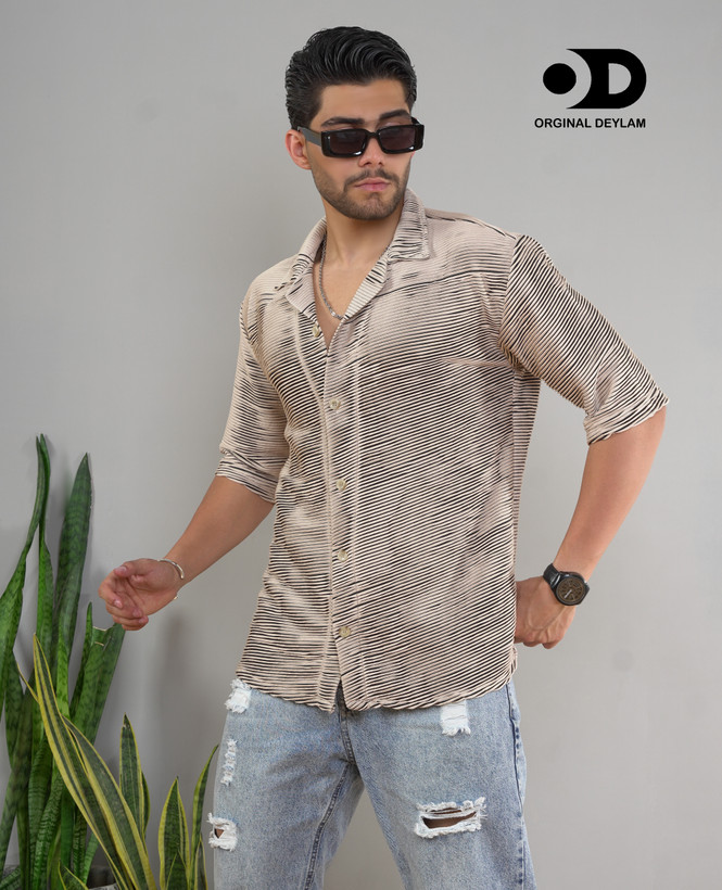 پیراهن لش یقه انگلیسی مردانه بافت فوقالعاده خفن و خاص رنگ کرم