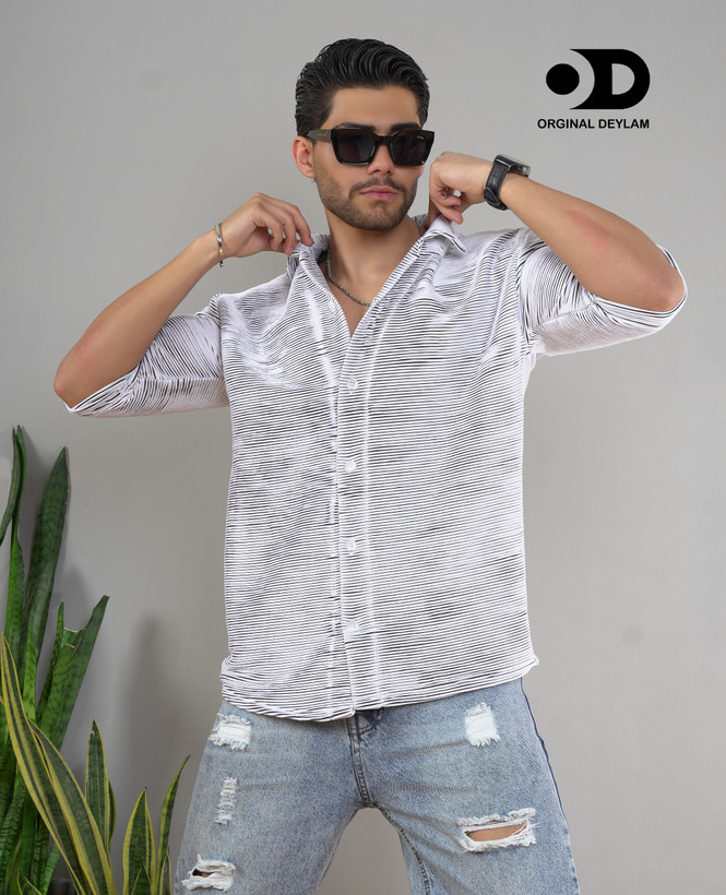 پیراهن لش یقه انگلیسی مردانه راه راه سفید، قطعهای لوکس و کاربردی است که هنر طراحی مدرن و راحتی را در هم آمیخته است. اصطلاح "لش" در نام این پیراهن، به برش آزاد و راحت آن اشاره دارد که آسایش فوقالعادهای را برای پوشنده به ارمغان میآورد. یقه انگلیسی (Camp Collar) با طراحی باز و مسطح خود، نمادی از سبک تابستانی آرام و بیدغدغه است.