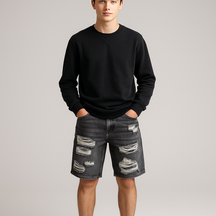شلوارک لی برمودا کاستوم شده محصولی است که از پارچه جین درجه یک ساخته شده و سپس با فرآیندهای کاستوم پیشرفته شامل فید، واش، رنگآمیزی هنری و تکنیکهای خاص، به قطعهای منحصربفرد تبدیل شده است. مدل برمودا با طول مناسب، پنج جیب کلاسیک، دکمه و زیپ فلزی اعلا، گزینهای شیک و متفاوت برای فصول گرم محسوب میشود.