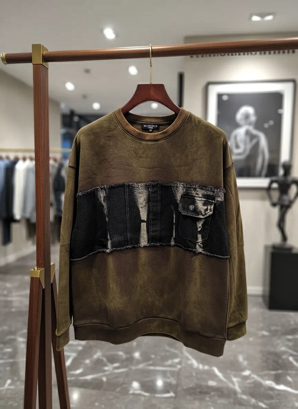 پارچه سه نخ پنبه استفاده شده در این محصول، علاوه بر ویژگیهای استاندارد، دارای خصوصیات ویژهای برای پذیرش تکنیکهای وینتیج است. این پارچه پس از عملیات شیمیایی و حرارتی، نرمی و انعطافپذیری بیشتری پیدا میکند. قابلیت نگهداری رنگهای متضاد و ایجاد کنتراست طبیعی از ویژگیهای منحصربهفرد این پارچه است.