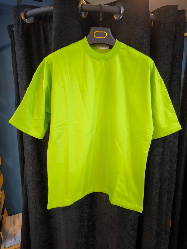 تیشرت بیسیک سبز فسفری لش آستین سه ربع پارچه پنبه ماکان دورس دو نخ | اورجینال دیلم