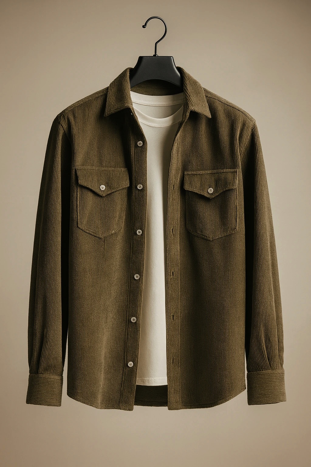 پیراهن کبریتی ریز سبز لجنی دو جیب مردانه | نخ پنبه اعلا