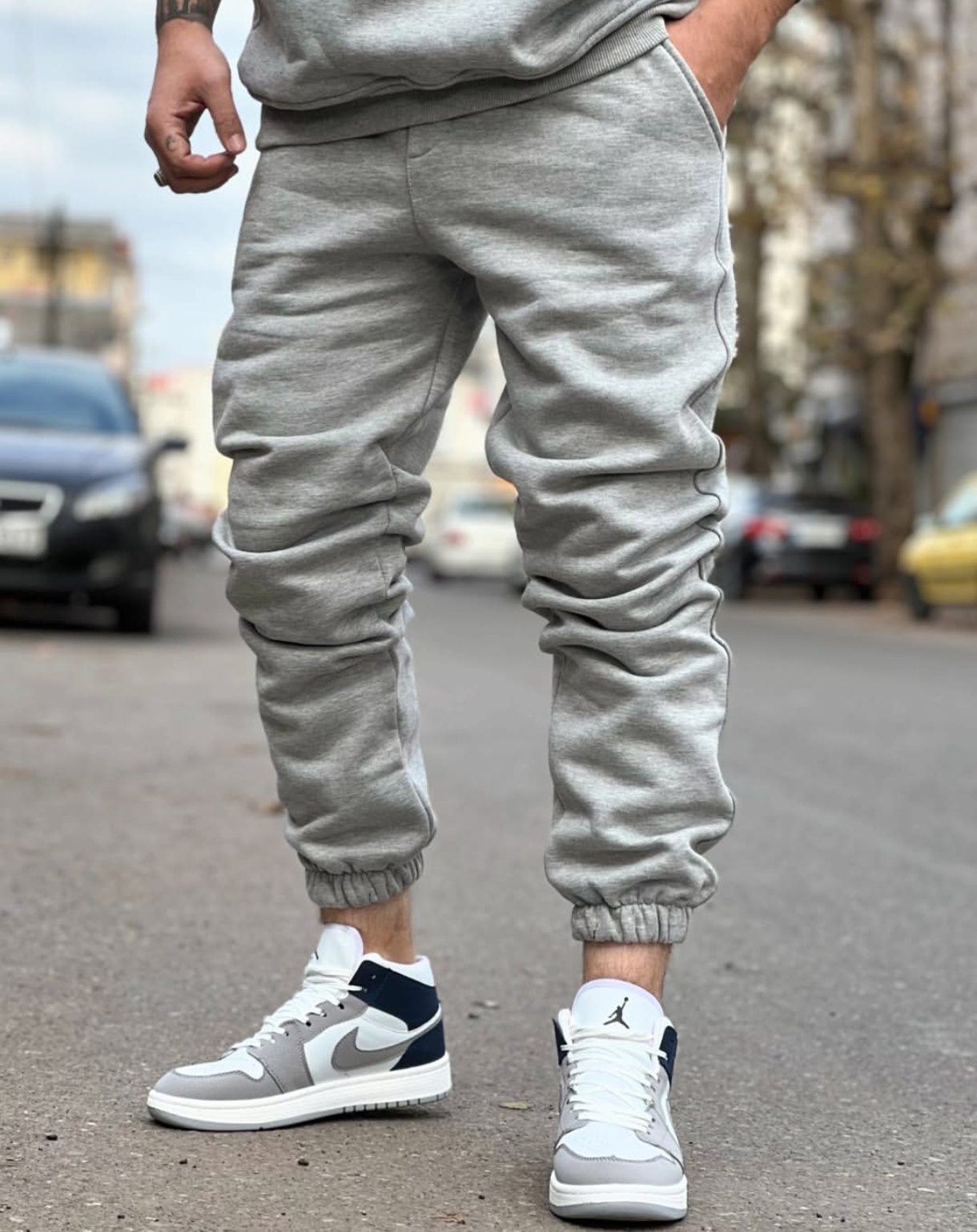 شلوار جاگر طوسی ملانژ پارچه دورس خار خورده | استایل فوق‌العاده شیک ۲۰۲۵
