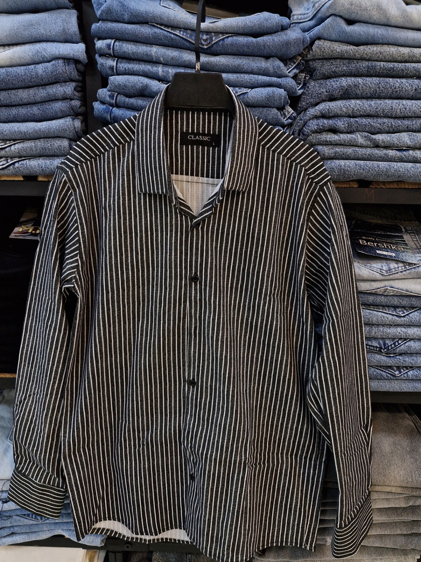 پیراهن مردانه «مشکی خطی» – راه‌راه پنبه‌ای پرمیوم