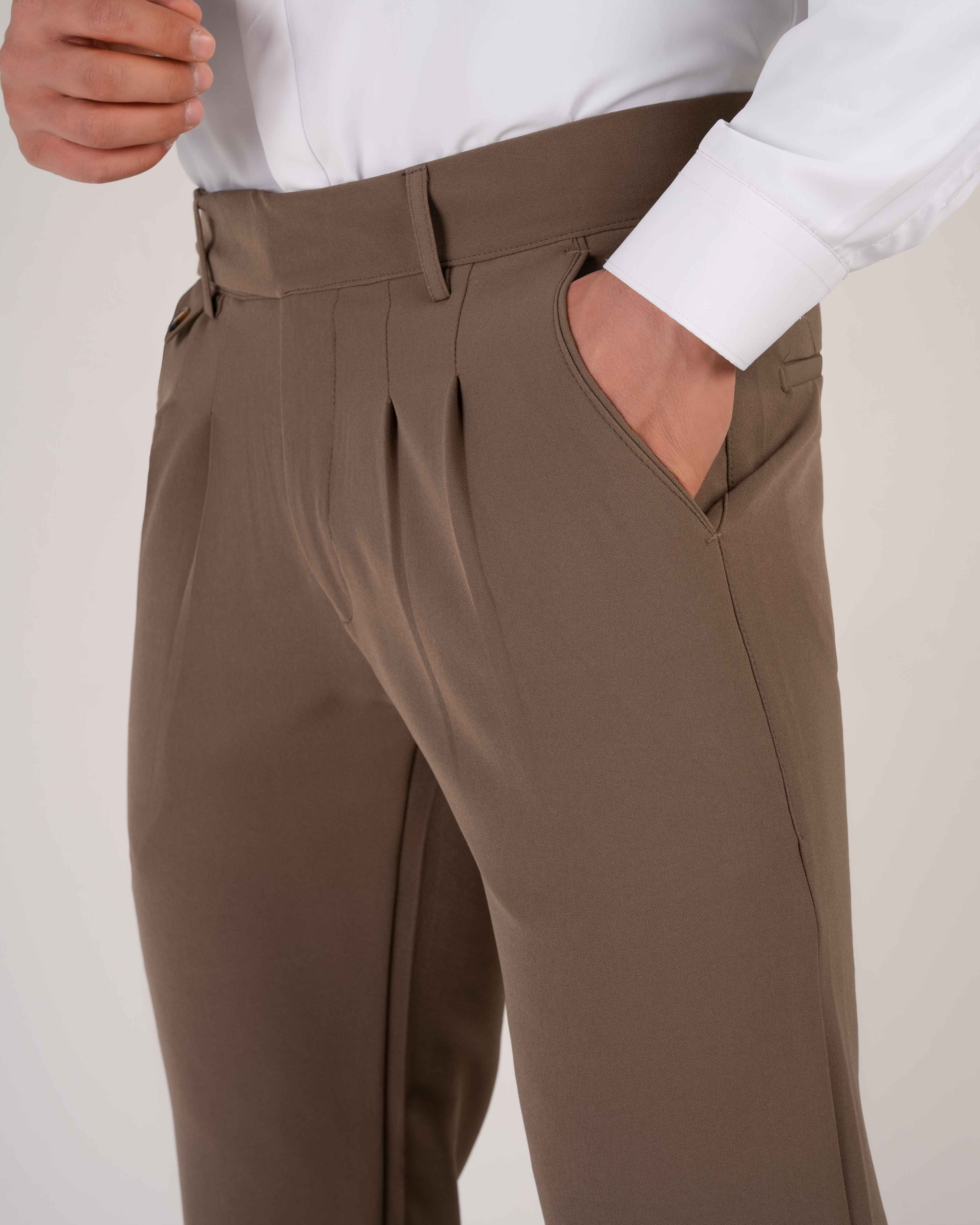 شلوار پارچهای مردانه کمر انگلیسی پارچه مازراتی | رنگ خاص موکا صحرایی