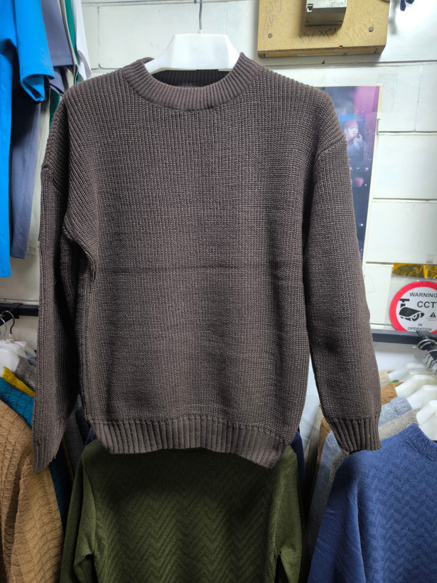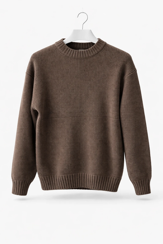 پلیور بافتنی لش باکسی | یقه گرد قهوه ای سوخته | فری سایز مناسب XL و XXL