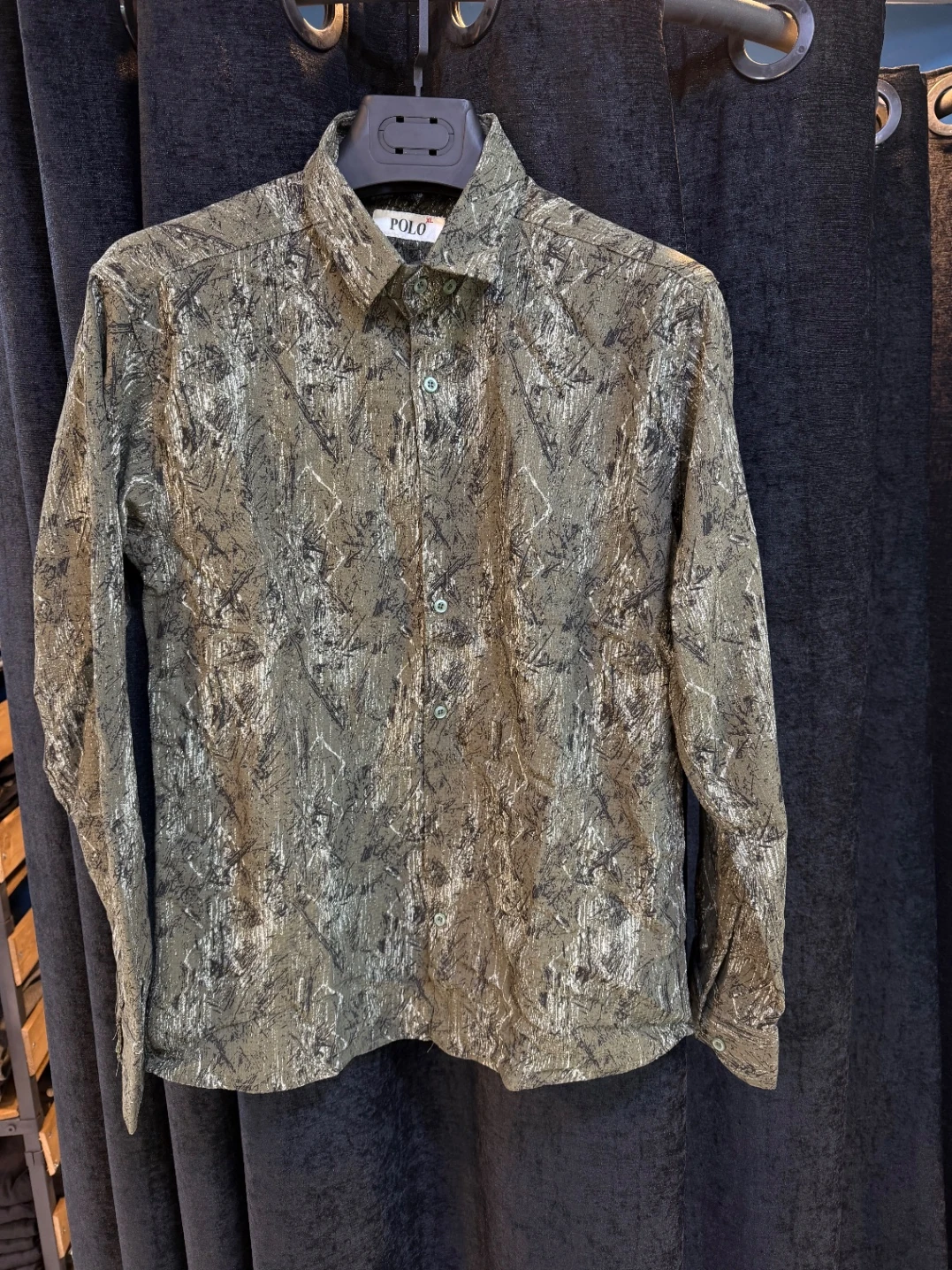 پیراهن کنفی طرح «ماربل اسکچ» سبز لجنی فوق العاده خنک و با کیفیت کد R13