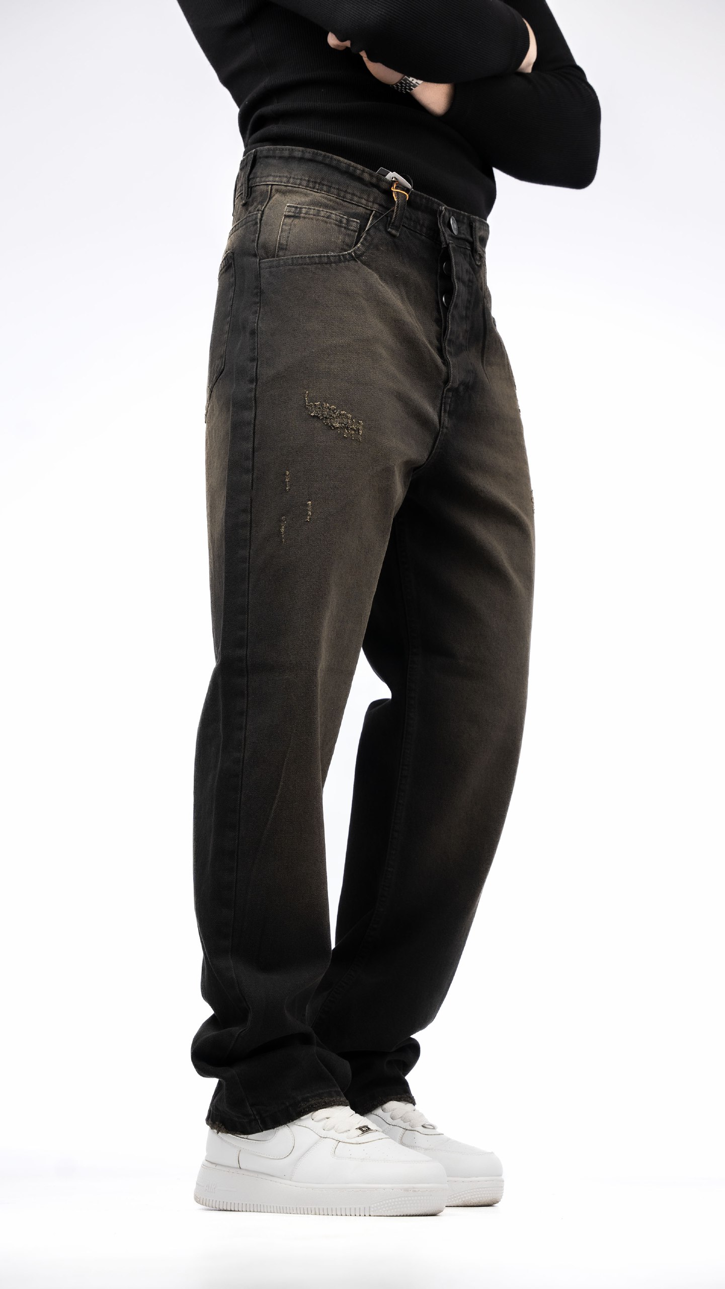 شلوار جین نیم بگ ذغالی تینت زرد گازوییلی مردانه پارچه کجراه با قد ۱۱۰ جدید مدل 2026