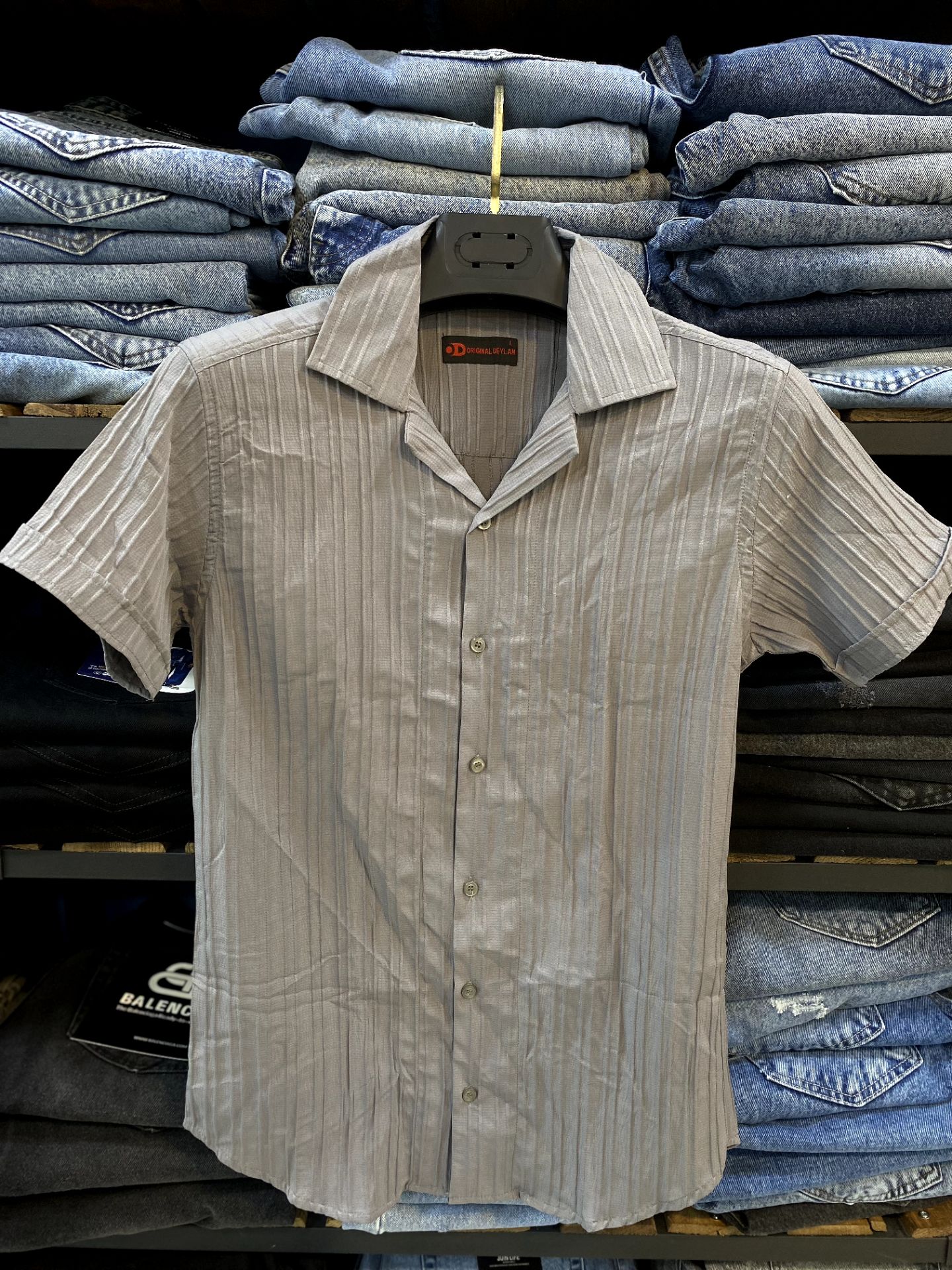 پیراهن مردانه آستین کوتاه یقه انگلیسی پارچه ریبدار | رنگ طوسی